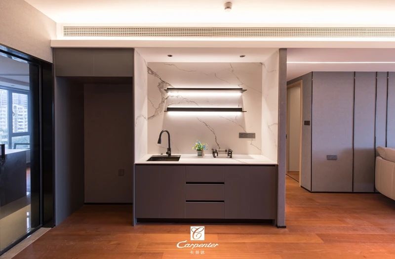 其中隱藏的移門衣柜讓換季衣服的收納更有條理