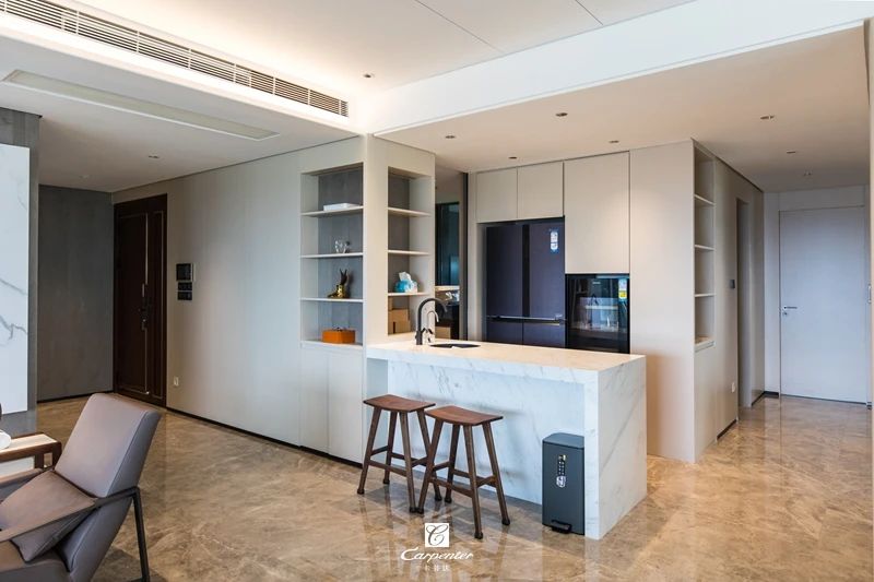 吧臺(tái)半開(kāi)放設(shè)計(jì),增加通透感